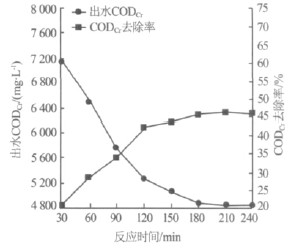 圖4 反應時間對CODCr去除率的影響