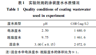 實驗水樣: 取自某汽車公司涂裝車間,水質(zhì)見表1。