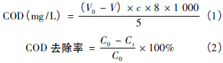 COD 采用重鉻酸鉀法,按以下式子計算COD的濃度和COD 的去除率: