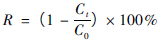 取100 mL 模擬水樣于250 mL 錐形瓶中,加入一定量的ACF,置于200 r/min 的搖床中震蕩一定時間后,取樣過濾,測定Cr(VI) 的濃度。根據式(1) 計算ACF 對Cr(VI) 的去除率R(%) :