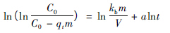 式中: C0為Cr(VI) 初始濃度(mg/L) ; m 為ACF 的添加量(mg/L),kb和a(<1) 為Bangham 動力學常數,可從線性方程的斜率和截距求得; V 為水樣體積(mL) 。
