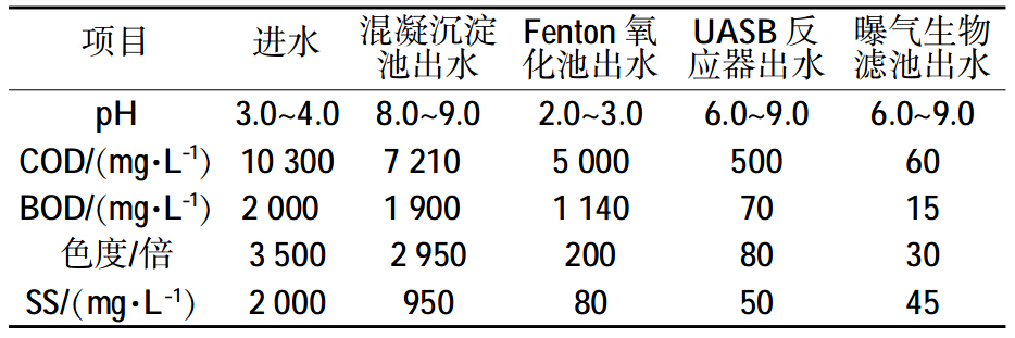 工藝穩定運行期間對廢水的處理效果見表 3。