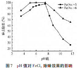三氯化鐵除砷效果隨體系pH 值改變而發生較大變化的原因為: