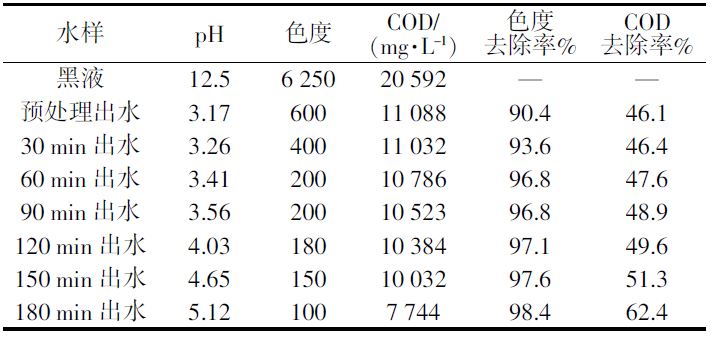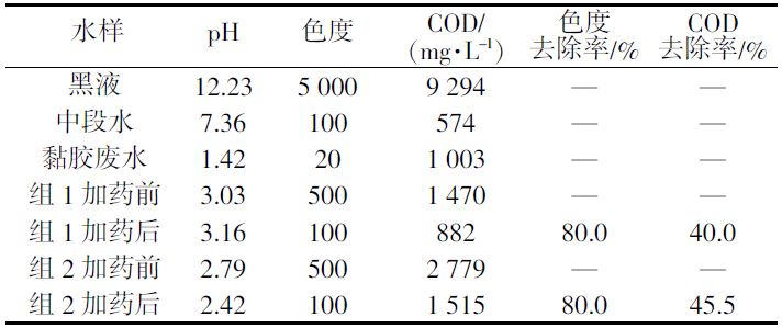 表 1 黑液處理水質(zhì)分析