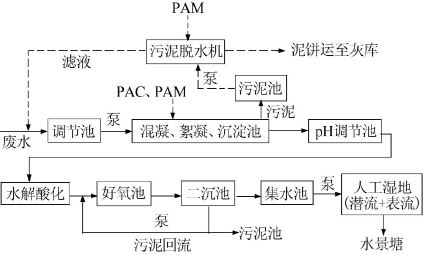 (3)在生化中試試驗(yàn)中,通過(guò)按V(黑液)∶V(中段水)∶V(黏膠廢水)=1∶4∶4混合,經(jīng)絮凝沉淀后調(diào)節(jié)pH至中性再進(jìn)入水解酸化池和好氧池,最終去除率可達(dá)70%,出水滿足二級(jí)排放標(biāo)準(zhǔn)。