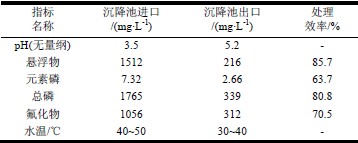 采用該生石灰中和—絮凝平流沉降法在黃磷企業連續運行二年時間,跟蹤了折流式沉降進出口水質、廢水回用系統運行情況及污泥生產情況。處理效果如下: