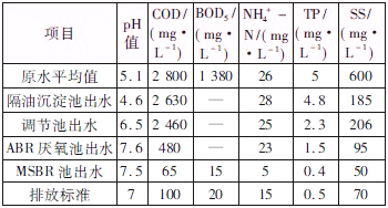 表1 原水水質(zhì)及排放標(biāo)準(zhǔn)