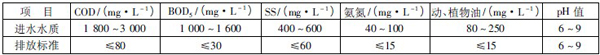 屠宰廢水具有以下特點: ①水質、水量隨時間變化大。產生的廢水量隨季節和日、時變化幅度很大,且屠宰多為一班制生產,白天流量大,濃度高,夜間流量小,濃度低。②有機物含量高,可生化性好,固體懸浮物含量高。廢水中含有大量血污、油污、肉屑、內臟污物及未消化食物等,且帶有血紅色和血腥味。根據環保要求,廢水處理規模確定為2 000 m3/d,出水水質執行《肉類加工工業水污染物排放標準》(GB 13457—92) 的一級標準(見表1) 。