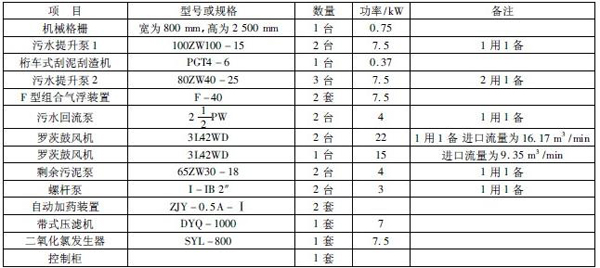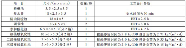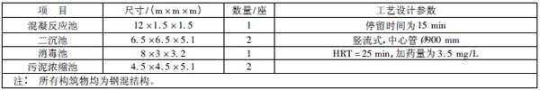 主要構筑物設計參數和設備參數分別如表2、3所示。