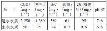 屠宰廢水經過格柵、隔油沉渣、氣浮等預處理措施,能有效去除大部分懸浮物、動植物油等污染物,并去除部分有機物質,保證后續處理工段的正常運行,減輕生物處理負擔。生物處理采用以水解酸化/三級生物接觸氧化為主的工藝,有機物處理負荷高,耐沖擊負荷,出水水質穩定。整個工藝設計完善合理,流程連續性強。經過調試運行,處理系統在COD 濃度較高的情況下長期運行,能保持很好的處理效果,對COD、BOD5與SS 的去除率均在95% 以上,出水水質優于排放標準。此外,該工藝的運行費用較低,廢水處理成本為0.86 元/m3。