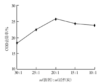 圖 3 鐵炭質(zhì)量比對COD去除率的影響