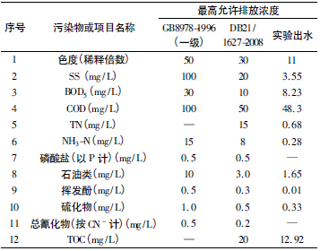 按GB16488-1996《水質石油類和動植物油的測定紅外光度法》測定殘渣中礦物油的含量; 采用國標法測定化學需氧量(COD) ; 密閉消解法測定NH3-N、TP 和SS; 其他指標也分別采用相應的國家標準測試。