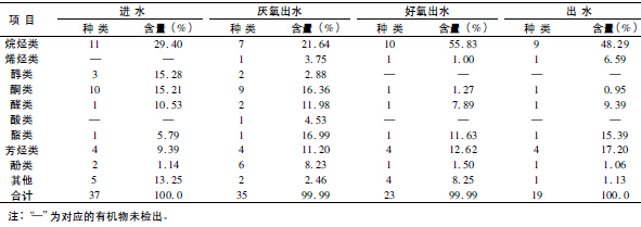 表2 GC-MS 分析進水和出水中有機物的種類和含量