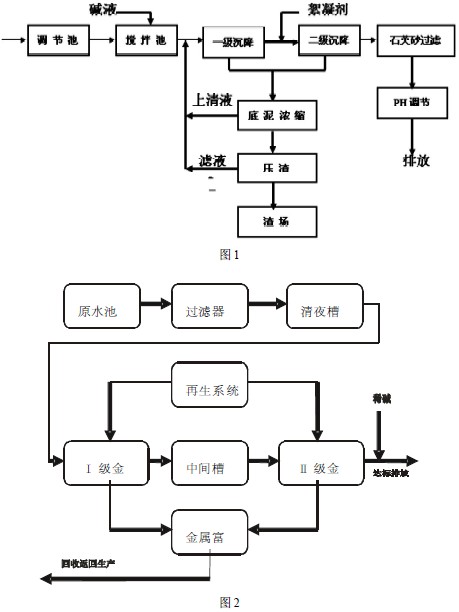 3.1 對上述的廢水處理原用的化學沉淀法處理工藝流程如圖1