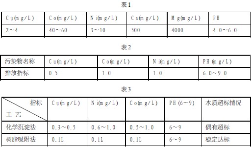 針對化學沉淀法的缺點,通過比較研究,采用離子交換樹脂吸附法替代原有化學沉淀工藝。通過大量實驗篩選出x型陽離子交換樹脂作為離子交換樹脂吸附法的首選樹脂。
