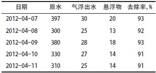 氣浮裝置實(shí)際運(yùn)行參數(shù)見表2。