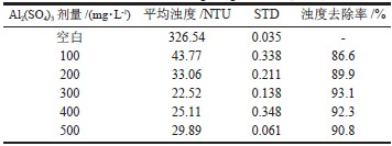 表3 單一成分Al2(SO4)3 的處理效果