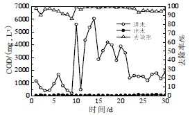圖3 A/O 池對COD 的去除效果