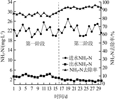 CAST工藝不同階段對含鹽污水中氨氮的去除效果如圖 3所示。