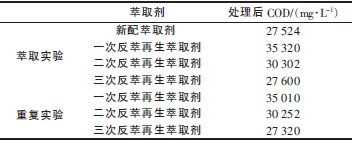 由表4 可見,萃取劑經6 次反萃再生后,萃取效果沒有明顯變化,說明萃取劑可多次再生循環使用。
