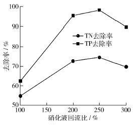 2. 2 硝化液回流比對系統脫氮除磷效果的影響