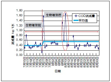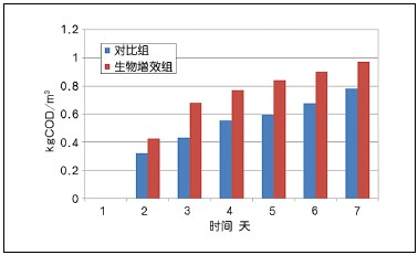 圖6 生物增效實驗中COD消減量的比較