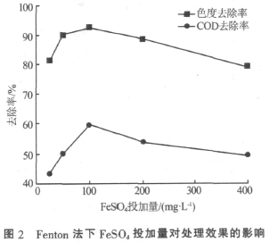 2.1.2 FeSO4投加量對處理效果的影響