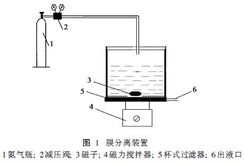 如圖1所示實(shí)驗(yàn)所用的膜為直徑為80mm的膜片,材料分為PVDF——聚偏氟乙烯膜(Po ling lidenefluor ide) 和PES——聚醚砜(Po lye thersulfone)。磁力攪拌器可調(diào)恒轉(zhuǎn)速。杯式過濾器用高分子復(fù)合材料制成,可以承受4個(gè)大氣壓并且耐酸堿。