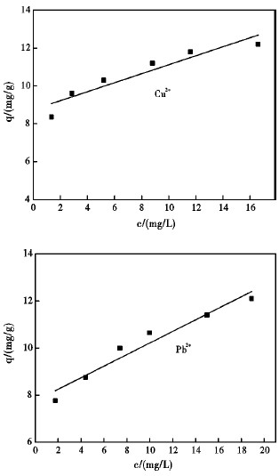 圖6 Cu2+、Pb2+、Zn2+的等溫吸附線