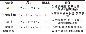 深度處理系統(tǒng)的主要構筑物見表2。