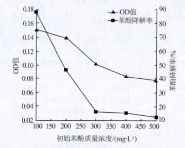 2.2.4 初始苯酚濃度對菌株降酚性能的影響