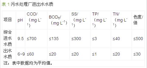 江蘇某工業園污水處理廠自1992 年建成至今,已完成兩次擴建。目前處理能力為40 000 m3/d。其中印染廢水占80%~85%,其余為食品、塑膠和化工廢水等,工藝出水執行《城鎮污水處理廠污染物排放標準》(GB 18918—2002)一級B 標準,污水處理廠進出水水質如表 1 所示。