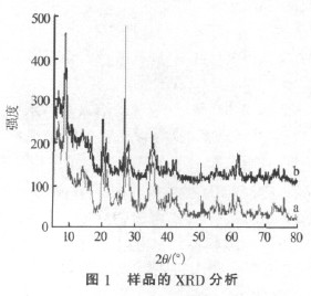 圖1 給出的是原凹凸棒土和硅鎢酸/凹土的XRD 譜圖。