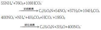 式中,C5H7O2N為亞硝酸細(xì)菌和硝酸細(xì)菌的細(xì)胞。