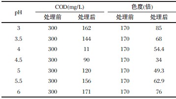 由表1 可知,廢水的pH 對處理效果有較大的影響,pH 在4~5 的范圍內(nèi),處理效果最好。