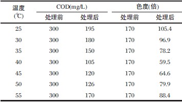 表2 溫度對固定化漆酶處理廢水效果的影響