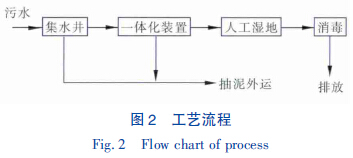 根據農村生活污水特點,采用集水井+ PDS 轉鼓式一體化處理裝置+ 人工濕地工藝,其具體工藝流程見圖2。