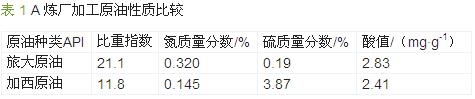 A 煉油廠加工原油主要為重質(zhì)原油,A 煉油廠加工的旅大原油和加西原油主要性質(zhì)如表 1 所示。