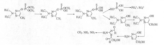 根據HPLC-MS 檢測到的中間產物,筆者對甲基嘧啶磷的電催化氧化降解機理作出以下的推斷: