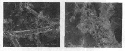 第3 階段使用100%垃圾滲濾液作陽極溶液。隨著陽極垃圾滲濾液體積分數的升高,可供微生物利用的有機產電底物增加。鐵氰化鉀緩沖液為陰極溶液時,各個產電周期明顯較第2 階段變長。陰極鐵氰化鉀全部還原后MFC 電壓仍能維持在0.35 V 以上,較第2 周期也有明顯提高。至該階段末期,陽極表面形成了明顯的結構不均勻的生物膜(見圖 3),主要以短桿菌為主。這與其他報道一致,已知的高效產電微生物如Geobacter、Shewanella 等都是短桿菌〔11〕。隨著馴化的進行,MFC 的輸出電壓有所上升,其最大輸出功率時所對應的內阻也從第1 階段的 1 010 Ω 上升到第3 階段的2 000 Ω。這可能是由于隨著垃圾滲濾液體積分數的增加,MFC 中低電導率的有機物也相應增加造成的。此外,由生物膜附著及陽離子取代造成的污損會導致膜離子交換性能的下降,也是MFC 內阻增加的重要原因之一〔12〕。可見,將 MFC 技術與某些簡單有效的物化預處理技術結合,可能會進一步優化MFC 處理垃圾滲濾液的效果。