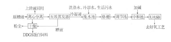 試驗所用玉米酒精廢水來自河南省某大型酒精廠,其廢水處理工藝流程見圖 1。