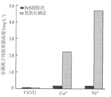 (2)納米FeS 溶膠兼有沉淀劑和還原劑2 種功能,能同時處理電鍍廢水中的Cr(Ⅵ)和Cu2+、Ni2+等重金屬離子。