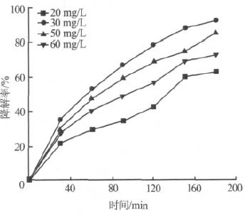 2.4 p-NA 初始質(zhì)量濃度對降解率的影響