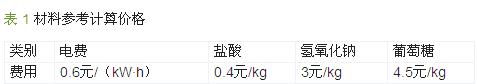 試驗工藝的運行成本僅具體包括: 電費和試劑費,不包括人工成本。關(guān)于材料的參考計算價格見表 1。