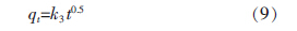將邊界條件t=0 時qt=0 及t=t 時qt=qt 代入式(5)定積分再轉化成常用對數后得到: