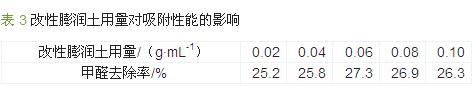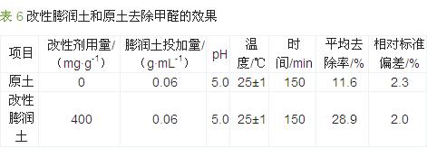 表 1 原土及改性膨潤土對水中甲醛的去除效果
