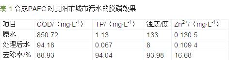 使用含鋅廢酸洗液所制PAFC 對貴陽市城市污水進行脫磷處理,結果見表 1。