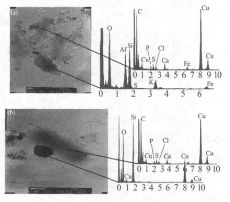 圖 1 貴陽市城市污水離心沉積物微粒的TEM 照片及EDS 能譜
