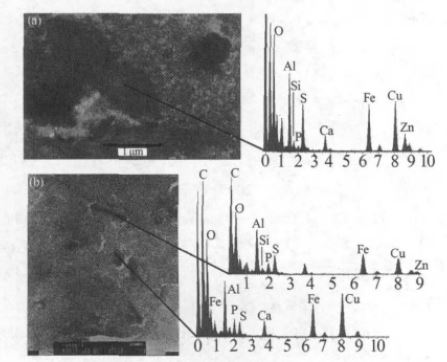 圖 4(a)表明絮凝沉降體中的條狀微生物是重金屬Zn 的富集體,圖 4(b)顯示,僅條狀微生物中含Zn 而團形物無Zn,進一步證實貴陽市城市污水中的條狀微生物對重金屬Zn 產生專屬吸附。由PAFC絮凝劑帶入的Zn 經條狀微生物吸附后可沉降去除,不會造成處理后水中的重金屬Zn 增加(見表 1)。