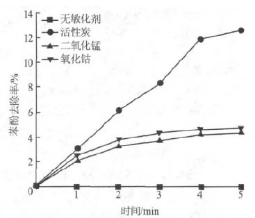 圖 2 不同微波敏化劑對苯酚的去除效果